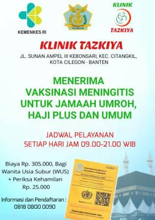 KLINIK TAZKIYA Menerima Vaksinasi Meningitis untuk jamaah umroh, Haji plus dan umum